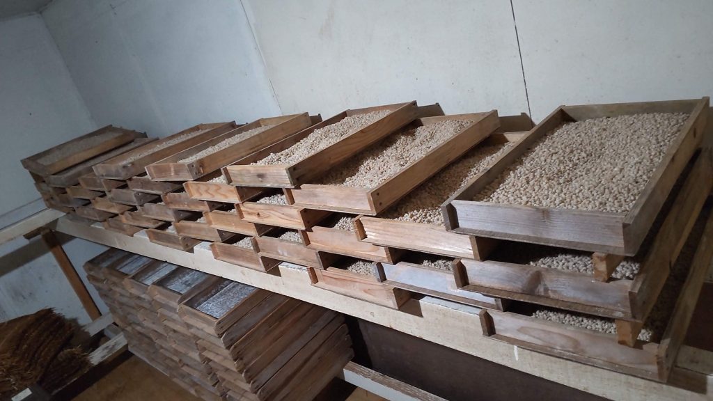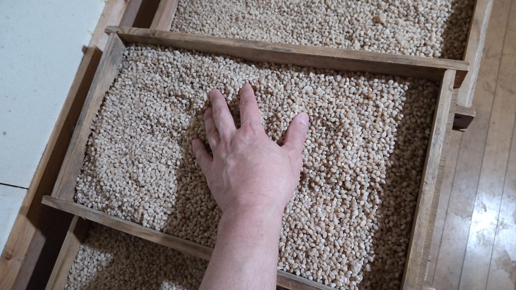朝とお昼すぎに手入れをします。固まりをほぐします。